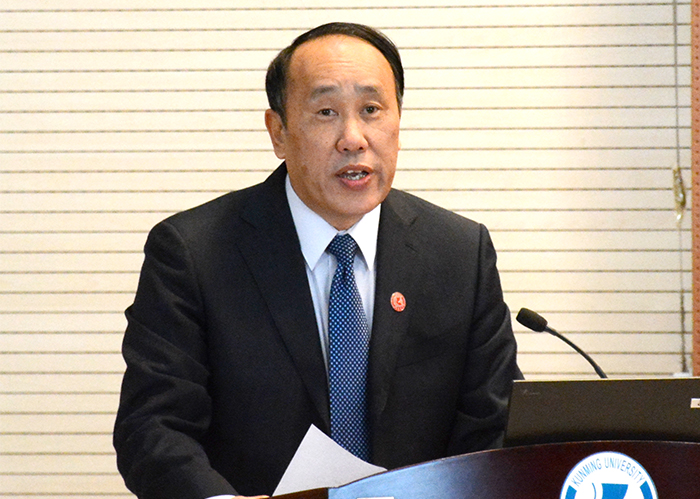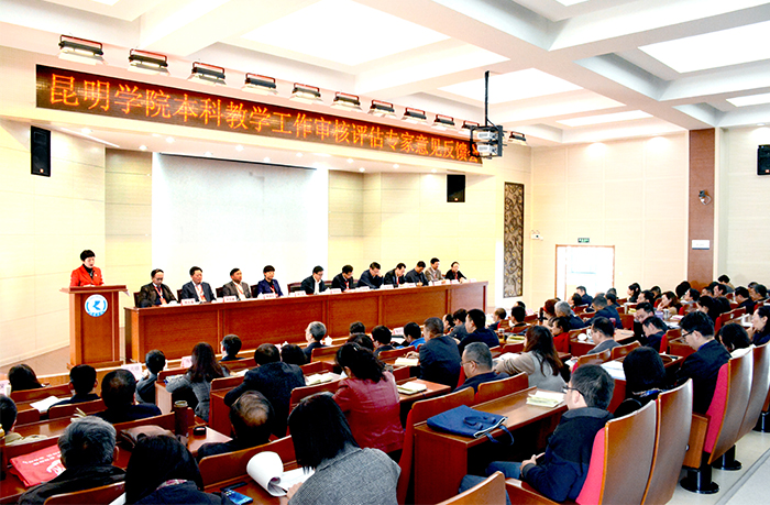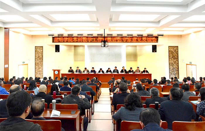 在分组考评和评估专家合议的基础上,29日下午,在办公楼三D报告厅召开本次审核评估意见反馈会。云南省委高校工委委员、教育厅党组成员、省政府教育总督学陈世波,昆明市委常委、副市长胡宝国出席意见反馈会。专家组组长谈哲敏主持会议并宣读评估结论。 专家组认为,昆明学院自2004年升本以来,不断的改革创新,砥砺前行,成绩突出。学校始终坚持社会主义办学方向,坚持立德树人的根本任务,人才培养中心地位突出,教师爱岗敬业,学生勤奋好学,特别是通过贯彻“以评促建、以评促该、以评促管、评建结合、重在建设”方针,强化了学校人才培养的问题意识,质量意识和发展意识,推动了学校本科教育的改革和发展,教育教学整体水平不断提高,本科教学成果呈现良好稳定的总体态势和昂扬向上的整体风貌。在审核评估过程中,学校评建工作,思路清晰,举措有力,准备工作细致,广大师生员工工作积极性高,精神面貌好。 陈世波总督学讲话强调,为进一步的推进学校的发展,一是明确办学定位,坚持特色发展。昆明学院要牢牢把握应用型大学的建设重点和关键,突出合作办学、合作育人、合作就业、合作发展这个核心,把握培养下得去、用得上、靠得住、离不开的一线生产、服务、管理人才这个重点,建设神形兼备的地方一流性大学。二是推进应用型人才培养,服务地方需求。学校要全面落实,人才培养的根本任务和根本标准,将四个回归不断深化,整合教育资源,优化人才培养方案,调整学科专业机构,加强教师队伍建设,增强服务社会能力,集中力量推进学校内涵的建设。三是抓住机遇,乘势而上。昆明学院要把这次评估作为发展的一个重要契机,全面梳理专家组提出的意见和建议,以实实在在的整改效果推进学校转型发展、内涵提升、重点突破,推动学校各项事业的全面发展。 胡宝国副市长指出,昆明学院作为昆明市唯一一所本科大学,自组建以来,始终坚持应用型办学方向,立足昆明,研究昆明,服务昆明,主动融入昆明市区域性国际中心城市建设中,培养了一批批适应区域经济社会发展,和行业、产业发展的优秀复合型人才。