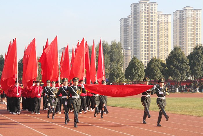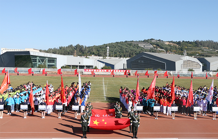 11月15日至17日,昆明学院2018年冬季运动会在田径场成功举行。学校党委副书记张祖武,纪委书记王映平,副校长熊晶、郭华、董建华、马银海、沈凡等校领导分别出席开、闭幕式。学校各职能部门负责人、各院系师生参加开闭幕式。 15日8:30,举行简朴而热烈的开幕式。张祖武副书记主持开幕式并宣布“昆明学院2018年冬季运动会”开幕。 在欢快的运动员进行曲中,国旗、校旗、红旗队、鲜花队、教职工代表队及18个院系方队踏着整齐的步伐依次向主席台走来,并在田径场中央列队,奏唱国歌,向冉冉升起的国旗行注目礼。