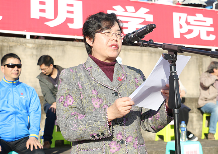 熊晶副校长致开幕词指出,冬季体育运动会已经成为我们校园生活的重要组成部分,是我校全面贯彻党的教育方针,落实素质教育的重要体现。学校始终坚持立德树人这一根本任务,以党的十九大精神和全国教育大会精神为指引,积极践行“广泛开展全民健身活动,加快推进体育强国建设”的倡议,促进学校形成珍视健康、热爱运动、积极向上的良好氛围,为培养德智体美劳全面发展的社会主义建设者和接班人而努力。 熊晶副校长要求,运动员、裁判员和工作人员恪守“公开、公平、公正”的竞赛规则,严格遵守运动会各项赛程和纪律,发扬“更高、更快、更强”的体育精神,在运动场上比思想、比作风、比纪律、比技术,赛出风格、赛出水平、赛出友谊、赛出团结。全校师生员工把体育运动当作一种生活方式,让身心健康成为一种追求和风尚,积极投身到体育锻炼中去。广大师生将体育运动中展现出来的自强不息、百折不挠、永不放弃、敢于担当、勇于拼搏、坚持到底的坚定信念和精神,内化于心,外化于行,转化为推进学校又好又快发展的动力。