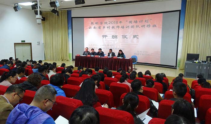 11月5日,由昆明学院承办的“国培计划(2018)”云南省乡村教师培训团队研修班在洋浦校区开班。昆明学院副校长马银海、省教育厅师范处处长雷韬、省“国培计划”项目首席专家李辉教授等领导和专家出席开班仪式。来自文山州文山市、麻栗坡县以及昆明市东川区的188名乡村教师、校长参加开班仪式,并将开启为期1个月的集中培训。