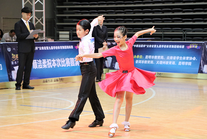 开幕式上,运动员、评判员代表分别宣誓。运动员表示,遵守规则、服从裁判;裁判承诺,恪尽职守,严格执法、以身作则、确保赛事公平、公正。 总决赛项目共设拉丁舞、标准舞、校园体育舞蹈三大类别八个组别,分别是大学专业组、大学普通院校组、大学留学生组、高职高专院校组、中学专业组、普通中学组、小学组、幼儿园组。比赛正式开始,各选手为了自己冠军之梦,跃跃登场使出浑身解数,纷纷亮相展示自己的舞蹈技艺。舞乐有趣,节奏感强,舞态花俏的恰恰,音乐缠绵,舞态柔美,舞步动作婀娜款摆的伦巴,音乐热烈,舞态富有动感,舞步摇曳多变的桑巴,音乐雄壮、舞态豪放、步伐强悍振奋斗牛和自由放松的牛仔舞。 经过两天的激烈角逐,“云南省第九届学校体育舞蹈锦标赛”团体总分揭晓。昆明学院以总分294分获得大学专业组第一名,云南经济管理学院以总分168分获得大学普通院校组第一名,楚雄金鹿中学以总分117分获得中学组第一名,昆明上铭体育舞蹈培训学校以总分1607分获得小学组第一名,曲靖市麒麟区第三幼儿园以总分29分获得幼儿园组第一名。 据悉,云南省学校体育舞蹈锦标赛是云南省教育厅面向云南省在校学生开展的单项体育舞蹈项目最高级别赛事活动。历经9届,规模不断扩大,参加者数十万学生计,有力地推动了体育舞蹈这一有利于学生体育、健康和美育成长的项目在云南省大中小学及幼儿园中的推广。云南省教育厅为规范体育舞蹈在学校的教学和竞赛,每年组织学校体育舞蹈教师、裁判培训班,面向全省大中小学及幼儿园教师进行教学和裁判培训,从中遴选出体育舞蹈优秀教师、裁判组成学校体育舞蹈锦标赛的竞赛组和裁判组。本次总决赛由云南省各大中小学体育舞蹈专家、裁判进行现场评判,推出云南省学校体育舞蹈的优秀学生,为云南省学校体育舞蹈人才储备和选拔具有重要意义。