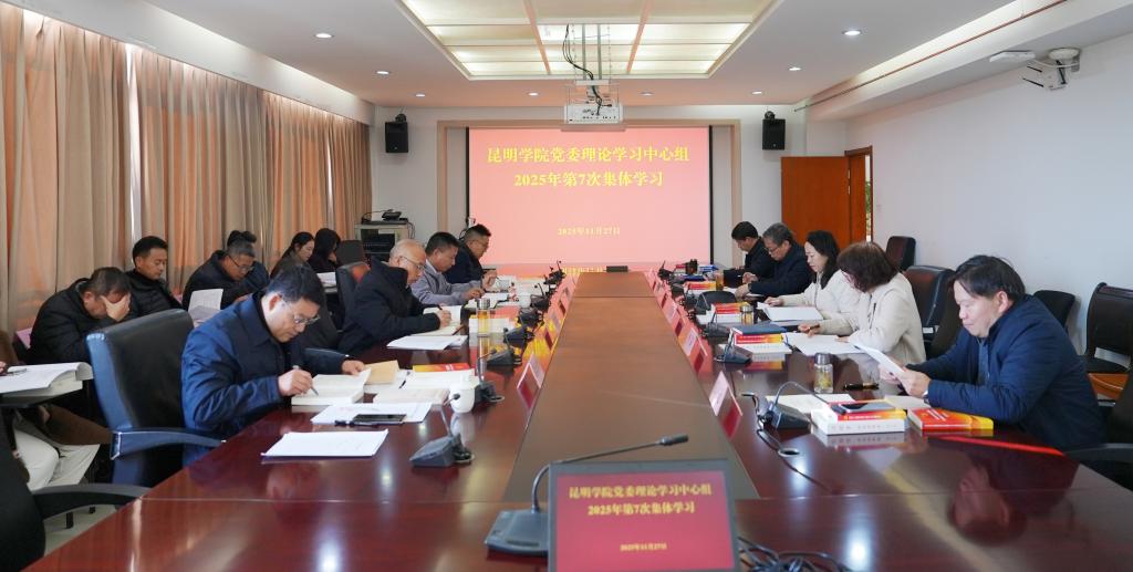 11月27日,昆明学院党委理论学习中心组开展2025年第7次集体学习,专题学习研讨党的二十届四中全会精神,深学细悟,切实把思想和行动统一到党中央决策部署及省委工作要求上来,真正让全会精神成为统领工作的“魂”和推进发展的“纲”,确保全会精神在学校高质量发展工作各方面落地生根、见行见效。会议由学校党委副书记、校长丁文丽主持。