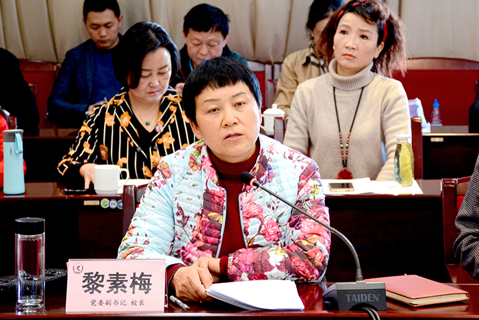 黎素梅校长在会上结合学校2019年工作计划要点和近期重点工作,对本学期工作作部署安排。强调,2019年要进一步加强政治学习和业务学习,稳步推进学校综合改革,重点实施完全学分制改革,扎实做好审核评估整改工作,着力优化本科专业结构,抓紧提升科研水平和质量,充分激发二级学院办学活力,全力做好硕士点建设和培育,继续加强师资队伍建设,全面加大教学改革力度。