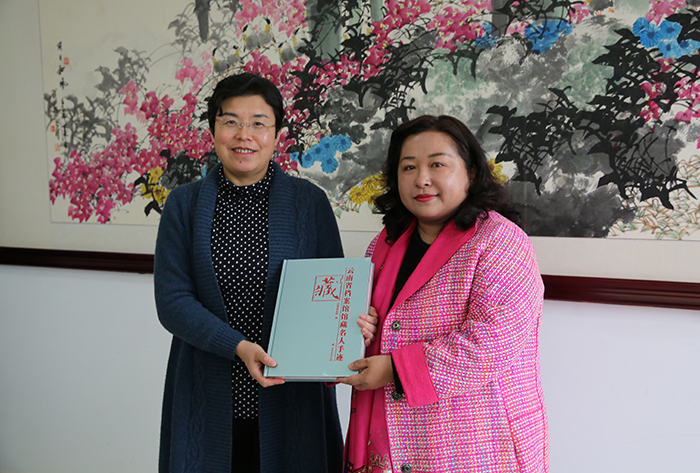 调研会上,段俐娟副局长代表省档案局向学校赠送《云南省档案馆馆藏名人手迹》。随后,省档案局一行领导到还我校滇池博物馆进行参观调研。