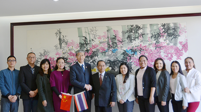 3月19日,泰国南邦皇家大学(Lampang Rajabhat University)校长 Somkiat Saithanoo先生、管理科学学院院长Natthanan Thitiyapramote女士、人文与社会科学学院副院长Saowaree Boonsa女士等一行7人来访我校。学校副校长董建华热情接见了Somkiat Saithanoo校长一行,我校人文学院和国际交流合作处相关人员参与了会谈交流。