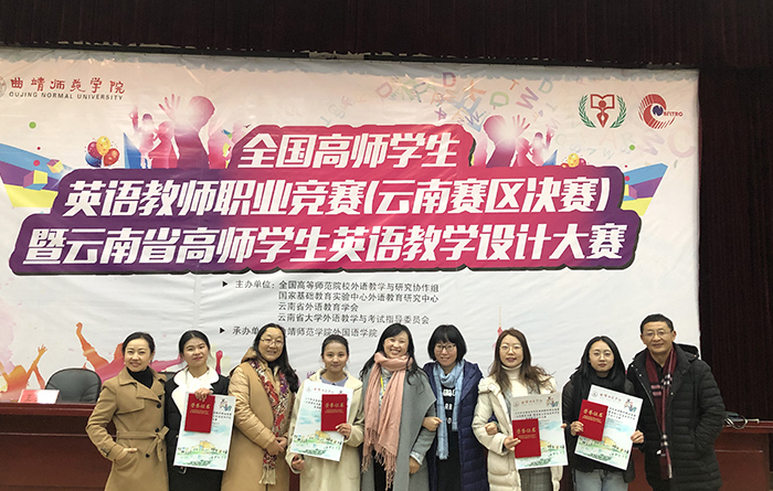 12 月 29 日, 2018年全国高师学生英语教师职业技能竞赛(云南赛区决赛)暨首届云南省高师学生英语教学设计大赛”在曲靖举办,我校外国语学院陈若瑛、李希紫、字国磊、张瑜四名参赛选手均荣获全国高师学生英语教师职业竞赛(云南赛区决赛)一等奖,陈若瑛、李希紫两位同学荣获云南省首届高师学生英语教学设计大赛特等奖、字国磊同学荣获一等奖、张瑜同学获二等奖。