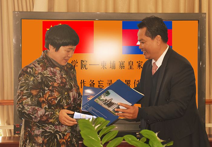 12月9日下午,柬埔寨皇家科学院院长Sok Touch院士一行3人访问昆明学院,共同签署合作备忘录。昆明学院校长黎素梅教授接待来宾并与Sok Touch院长共同签署昆明学院与柬埔寨皇家科学院合作备忘录。
