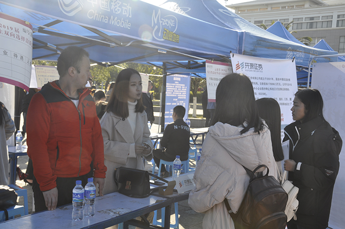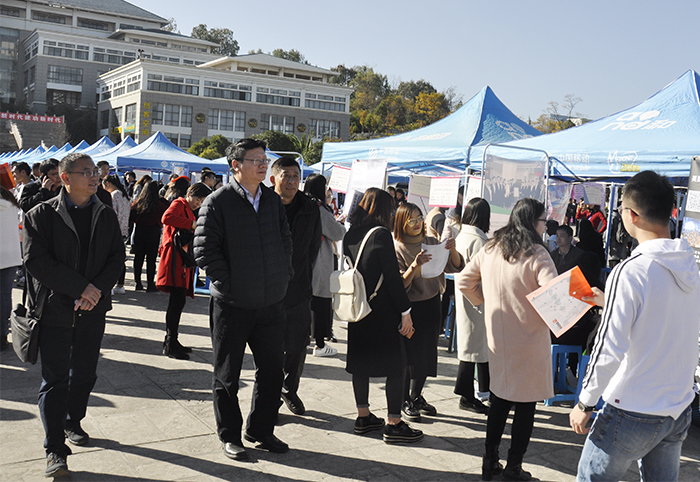 12月21日,云南省2019届综合类高校毕业生双向选择洽谈会在我校成功举行。省委高校工委副书记陈世波,学校党委书记陈永明、副校长郭华,云南省大中专毕业生就业服务中心主任周舟及昆明市就业服务局、昆明市人才服务中心领导深入招聘会现场了解情况、指导工作。 本次招聘会由云南省教育厅主办,昆明学院、红河学院、文山学院、云南省大中专毕业生就业服务中心共同承办。旨在积极拓宽我省毕业生就业创业渠道,努力搭建规范安全的就业平台,实现我省高校毕业生更高质量和更充分就业。 学校本着“控制规模、提升质量”的工作原则,充分利用政府、行业资源,积极开拓毕业生就业市场,各院(系)通过“走出去、请进来”等形式,主动邀请用人单位参加本次招聘会。根据我校2019届毕业生专业特点和求职需求,最终遴选出包括云南云内动力集团有限公司、昆明南疆制药有限公司、中国光大银行股份有限公司昆明分行、沈机集团昆明机床股份有限公司、昆明洲际酒店、昆明市第一人民医院、昆明市卫生学校等400多家企业参会(其中省外参会单位89家),提供就业岗位近16000多个,招聘会现场分为各区政府提供的就业单位、机电建筑、经济管理、旅游管理、文教卫生、农林渔牧等多个专区,方便毕业生根据自己所学专业选择对口企业应聘。 招聘会现场秩序井然、气氛热烈。现场宣传展板醒目的宣传党的十九大报告提出的就业方针政策和国家促进2019届毕业生一系列政策、措施。招聘现场来自省外高校17所、省内高校20所近4000名毕业生积极主动投递求职材料,踊跃与应聘单位交流洽谈,各院(系)领导、辅导员、班主任现场指导毕业生就业,帮助毕业生及时解决应聘过程中出现的问题。据统计,毕业生现场投档数2367份,基本达成就业协议数629人。学校将进一步推进就业工作,继续为2019届毕业生就业提供优质指导、优质帮扶、优质信息和举办一系列专场招聘会等多项服务,同时希望广大毕业生树立信心,主动就业,为顺利走好人生职场的第一步做好充分的准备。