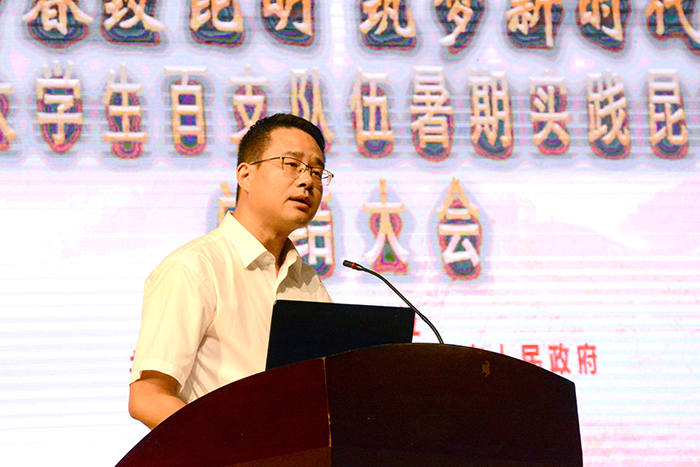 8月16日上午,“青春致昆明 筑梦新时代”全国大学生百支队伍暑期实践昆明行活动总结大会在我校隆重举行。此次实践活动以“青春致昆明 筑梦新时代”为主题,100支队伍,近600人参与实践活动,打造“红色记忆”、“活力昆明”、“文化昆明”、“脱贫攻坚”、“绿色发展”5个实践主题,取得良好的示范引领效果。昆明市委常委、副市长胡宝国,我校党委副书记张祖武,共青团云南省委副书记魏妮娅,云南省文化厅机关纪委书记张劼,共青团昆明市委书记郝国栋,云南省人力资源社会保障厅就业促进处副处长马责及来昆参加活动的百支大学生实践团队师生参加了总结大会。