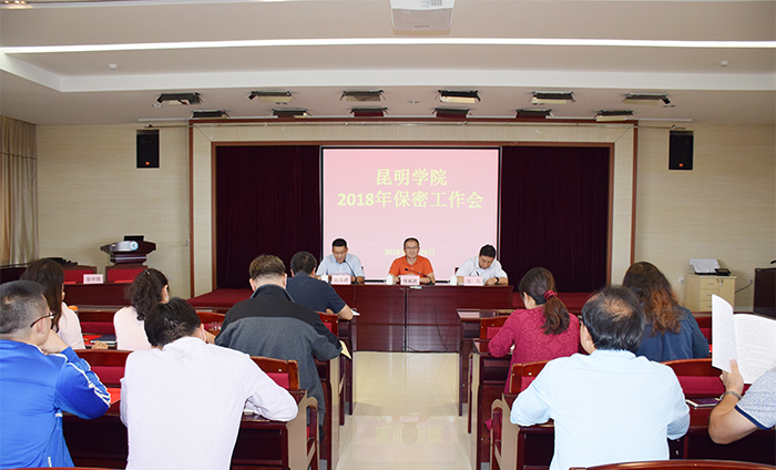 会议,还传达学习了中共中央保密委全体会议及相关文件精神,对学校2017年度保密工作作了总结通报,并就2018年保密工作进行安排。通报指出,2017年度督查组充分肯定昆明学院保密综合工作,督查检查结果评定为“优秀”。2018年,学校将深入学习贯彻习近平新时代中国特色社会主义思想,按照中央、省保密委的统一安排部署,紧紧围绕学校中心工作,坚持把保密工作摆在突出位置,深化推进保密法制宣传教育工作,进一步加强保密队伍建设,健全保密防护体系消除泄密隐患。