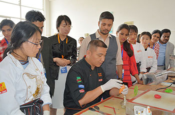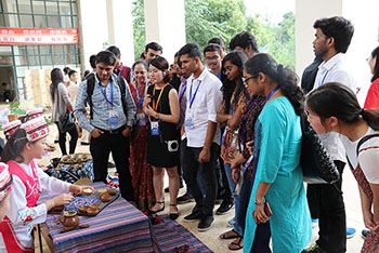 7月7日,印度青年代表团参观访问昆明学院,这是自去年12月“中国—上合组织青年交流中心”在昆明学院挂牌成立以来,迎来的第一个上合国家青年交流访问团。印度青年代表团共计100余人,由印度青年事务与体育部青年事务副秘书长妮娜(Neena)女士、印度青年事务与体育部官员加尼森(Ganesan Sylendra Chitra)和印度驻华大使馆秘书巴沙(Sharique Badr)带队抵达云南并参观访问昆明学院。 学校在体育综合馆举行了欢迎仪式,共青团云南省委书记、省青联名誉主席唐源,中国国际青年交流中心部长陆铁钧,昆明市青联主席郝国栋,昆明学院校长黎素梅、副校长熊晶出席欢迎仪式。 黎素梅校长致欢迎辞指出,中国-上合组织青年中心落户昆明学院,为学校拓展国际交流合作空间带来前所未有的机遇。印度青年代表们的到来,是上合组织发挥国际效应和引领示范作用的具体体现,也是学校国际交流合作工作向深度、广度发展的契机。中印两国青年肩负着两国的未来和民族的希望,是中国梦和印度梦的全程参与者和受益者,肩负着伟大的历史使命和光荣责任。希望两国青年能从中印两国的古老文明中汲取智慧,在追求真理的道路上一路向前。 唐源书记致辞表示,代表团这100名来自印度各地的优秀青年学生和青年代表不远万里来到云南,是我们增进交流、寻求合作、共促发展的好机会。中国和印度都是上合组织成员国,两国互为重要邻居,中印作为两个最大的发展中国家和10亿以上人口级别的新兴市场经济体,是世界经济增长的重要引擎,也是促进世界多极化、经济全球化的中坚力量。当前,中国特色社会主义已经进入新时代,印度也提出了建设“新印度”的目标,在发展振兴的道路上,中印两国面临着相似的任务。我们应该坚定聚焦发展,深化交流合作,共同实现民族复兴,共同为世界和平与发展作出积极贡献。 欢迎仪式上,学校体育学院、音乐学院同学带来的民族体育舞蹈、瑜伽、太极和云南民族舞精彩教学展演,表达了学校对印度青年来访的欢迎。随后,印度青年代表团成员分别到滇池流域文化博物馆、农学院、美艺学院和旅游学院体验云南特色茶艺、手工艺和饮食文化。学校各具特色的实践教学方式和云南丰富的文化、先进的技术以及发展都让代表团成员赞叹不已。