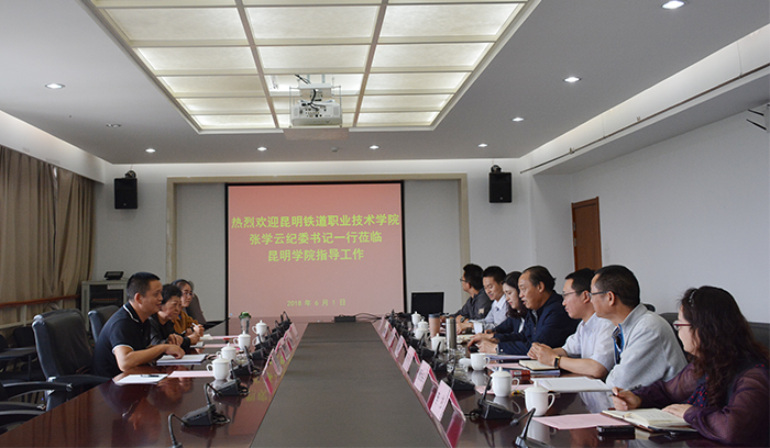 张学云书记首先对学校的接待表示感谢。他说,昆明铁道职业技术学院是刚从中专升为高职高专院校,学校相关职能部门刚组建完成,按照高校的职能和工作要求,学校好多工作才刚刚起步。昆明学院近年发展迅速,办学特色明显,引领省内地方高校。今天到昆明学院,一是学习好经验好做法,二是向母校汇报工作、汇报思想。