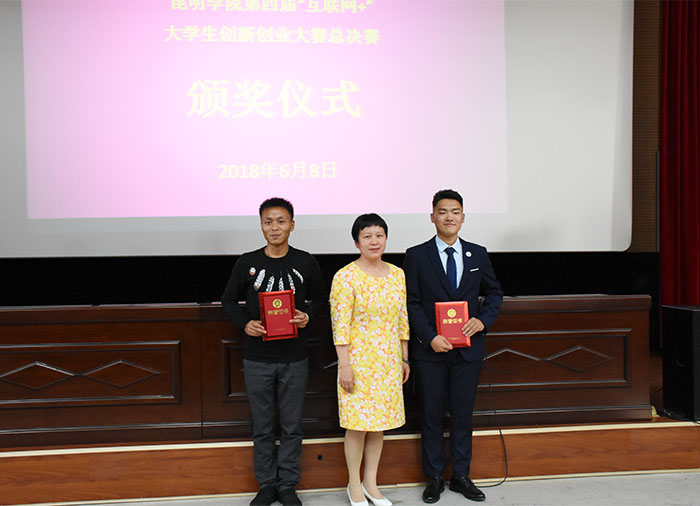 6月8日,昆明学院第四届“互联网+”创新创业大赛总决赛在创新创业学院报告厅成功举行,特殊教育学院“星语特殊儿童教育康复中心”、农学院“云南野生红皮八月炸水果开发”两个项目荣获金奖。校长黎素梅,副校长熊晶、郭华、马银海出席活动并为获奖团队颁奖。