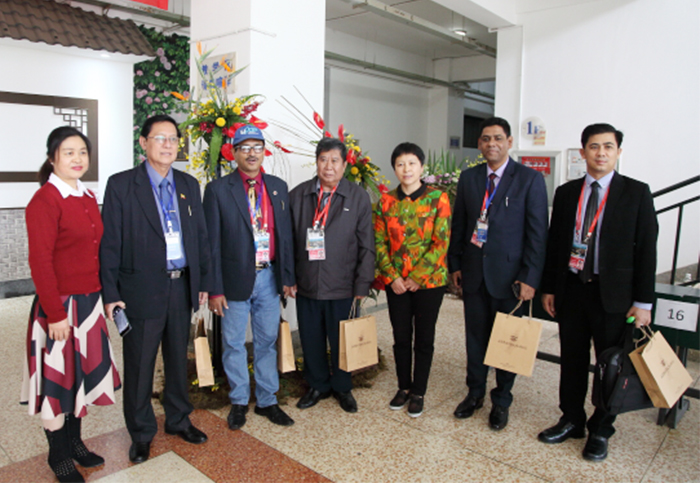此后,由黎素梅校长和熊晶副校长陪同的“昆明市友好城市的政府代表团”20多位国际友人莅临活动现场,参观了博物馆和花文化分馆,对教师的参赛作品和“插花文化社”学生为营造现场氛围创作的花艺赞不绝口,纷纷拍照留念。