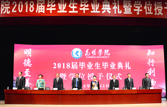 张祖武副书记宣读了《云南省教育厅关于表彰2018届普通大中专学校优秀毕业生的决定》和《昆明学院关于表彰2018届校级优秀毕业生的决定》。副校长熊晶宣读了《昆明学院关于审定2018届全日制本专科毕业生毕业资格和授予学士学位的决定》。
