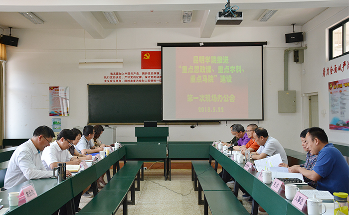 5月22日,学校党委书记陈永明、校长黎素梅召集马克思主义学院建设发展现场办公会,为学校思想政治理论课建设和马克思主义学院建设发展问诊把脉,破解难题。校党委副书记张祖武,副校长郭华、董建华,学校思想政治理论课建设领导小组成员单位和深化改革领导小组办公室办负责人,马克思主义学院党政领导及教职工代表参加会议。