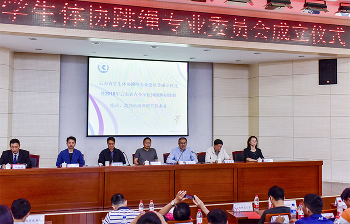 云南省学生体育协会批准跳绳专业委员会在昆明学院成立,确立了我校在云南省校园跳绳运动项目上的引领地位,校党委张祖武副书记在讲话中指出,近年来我校通过公共课程改革及教学实践活动,在跳绳运动项目上取得了较大突破,屡次在全国大赛中获得好成绩;通过与云南省女子强制隔离戒毒所“警民共建”,将跳绳项目成功引入戒毒人员身体康复训练,效果显著,得到了社会的广泛关注。在今后的工作中,学校将一如既往地贯彻落实好教育厅的指示精神,全力支持学生体育协会的各项工作,为校园跳绳运动的推广和云南省学校体育的可持续性发展做出应有的贡献,续写新的篇章。