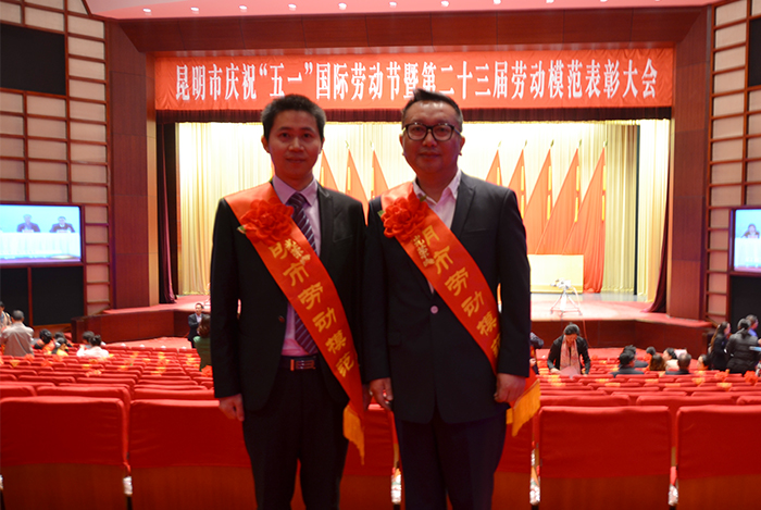 4月28日,昆明市召开庆祝“五一”国际劳动节暨第二十三届劳动模范表彰大会。我校荣获昆明市第二十三届劳动模范的化学科学与技术系梁德强和音乐学院鲁林在会上接受了表彰。