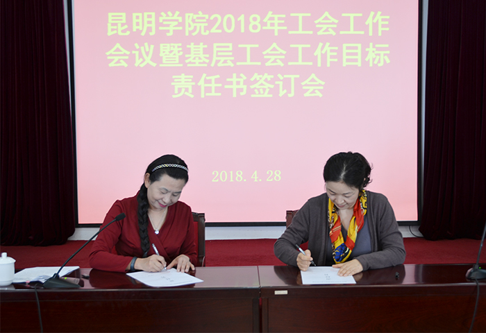 会议最后,工会常务副主席杨岚与分工会主席代表签订2018年昆明学院基层工会工作目标责任书。