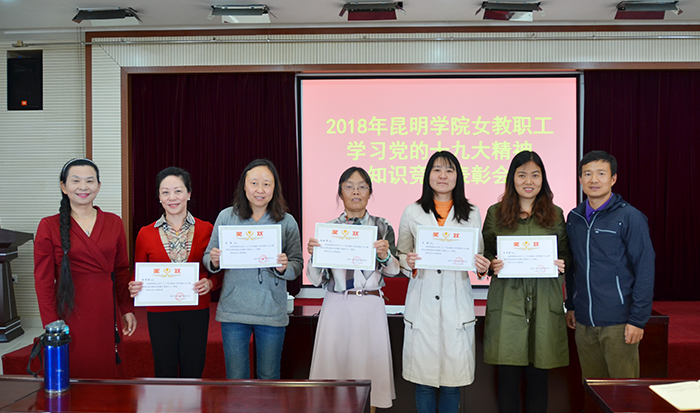 会议宣读了《教育工会昆明学院委员会关于给予“三八”节女教职工学习党的十九大精神及法律法规知识竞赛获奖单位和个人表彰的决定》,与会领导为获奖单位代表和获奖个人代表进行颁奖。