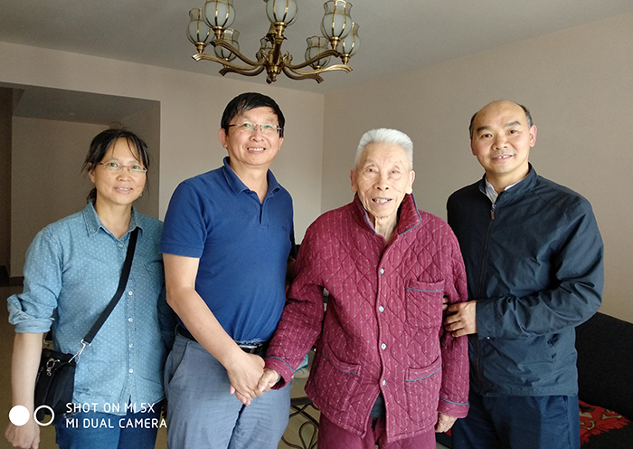 马银海副校长和城建学院负责人一行,来到呈贡大学城书香大地饶英伟教授住地,探望并感谢他心系学校发展捐书助学的好意,向饶英伟颁发了捐赠图书证书,愿饶老保重身体,健健康康安度晚年。马副校长要求城建学院好好保存图书,除了供读者借阅外,也要作为一笔精神财富加以珍藏。