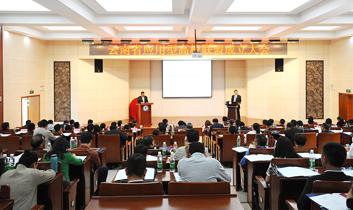 为进一步深化产教融合、校企合作,引导和推进地方普通高校向应用型转变,搭建应用型高校校地合作、校企合作平台,推动区域内产业、教育、科技资源的统筹,建立学校、地方、行业、企业等多方协调育人机制,4月13日,由云南省教育厅主办、昆明学院承办的云南省应用型高校联盟成立大会在学校行政楼三楼D区报告厅举行。省教育厅高教处处长卢明,昆明学院校长黎素梅,全省32所高校、10个合作企业和1个教育服务咨询机构的领导出席成立大会。成立大会由昆明学院副校长马银海主持。 省教育厅高教处处长卢明代表省教育厅,在会上分别宣读了省教育厅关于成立云南省应用型高校联盟成立的决定,联盟理事长单位、副理事长单位、联盟成员单位和首届理事长、副理事长、秘书长名单。同时,向联盟理事长单位昆明学院授牌。向联盟理事长昆明学院校长黎素梅,副理事长保山学院校长赵周、昆明理工大学副校长袁希平、云南师范大学副校长马力、民族大学副校长李炳泽、云南财经大学党委副书记谢昌浩、昆明学院副校长马银海、红河学院副校长刘艳红、昆明理工大学津桥学院院长邓钢、云南师范大学商学院院长王昆来、云南经济管理学院院长侯德东、云南高博尔教育评估中心董事长普林林、云南浩宏物流集团董事长李天明颁发聘书。 随后,卢明处长和理事长、副理事长共同为联盟成立按下启动球。 作为联盟理事长单位,黎素梅校长表示,昆明学院将在省教育的支持、指导和帮助下,团结和依靠联盟副理事长单位认真开展理事会各项工作,当好联盟的参谋和助手,发挥好上情下达,下情上传的桥梁和纽带作用。并强调,将以深化产教融合为主线,以专业建设为重点,以体制机制探索创新为切入点,通过合作交流、学术研究、协同创新及培训指导,促进联盟成员的应用型人才培养模式改革、科学研究能力提高、社会服务能力提升、文化创新与传承能力和国际合作与交流能力增强,建成一批一流应用型高校、培育一批一流应用型专业、培养大批一流应用型人才,提高云南高校服务地方经济社会与产业发展的能力和水平。 卢明处长对联盟工作提出要求:一是要发挥联盟平台作用。联盟要围绕高校人才培养目标,充分发挥联盟资源平台作用,促进和加强各联盟单位之间的交流和合作,促进省内外关组织机构的交流合作,组织开展高校人才培养的评价和交流指导,助推高校提高办学能力和水平,真正把联盟建成工作联系的平台,经验交流会的工作站,咨询服务的专家中心。二是要发挥纽带作用。着力推进建立多方协调运营机制,联盟要围绕地方高校向应用型转型的诸多问题开展理论讨论和研究,为学校发展和政府决策提供参考。联盟要加强资源信息共享,总结经验成果,及时推广交流,要吸引行业企业服务机构等更多的单位加入联盟,来打造紧密的组织,搭建应用型高校校园合作、校企合作的平台,推动区位产业教育科技资源的统筹,推进建立学校、地方、行业和企业多方协调机制。三是要发挥制度作用。着力推动落实各项重点工作,联盟要积极主动参与到全省推进高等教育发展的各项工作部署当中来,充分发挥联盟专家的作用,积极开展专家咨询、业务培训和社会服务,不断提升了联盟的影响力和贡献率。