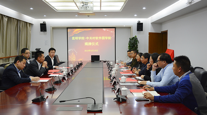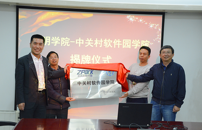 4月19日,昆明学院•中关村软件园学院正式落户昆明学院,中关村软件园总经理杨楠、昆明学院副校长马银海出席揭牌揭牌仪式并共同为“昆明学院•中关村软件园学院”揭牌。
