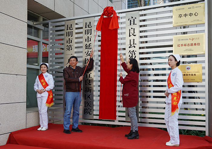 最后,马银海副校长与宜良县副县长刘春菊共同为昆明学院附属宜良医院揭牌。