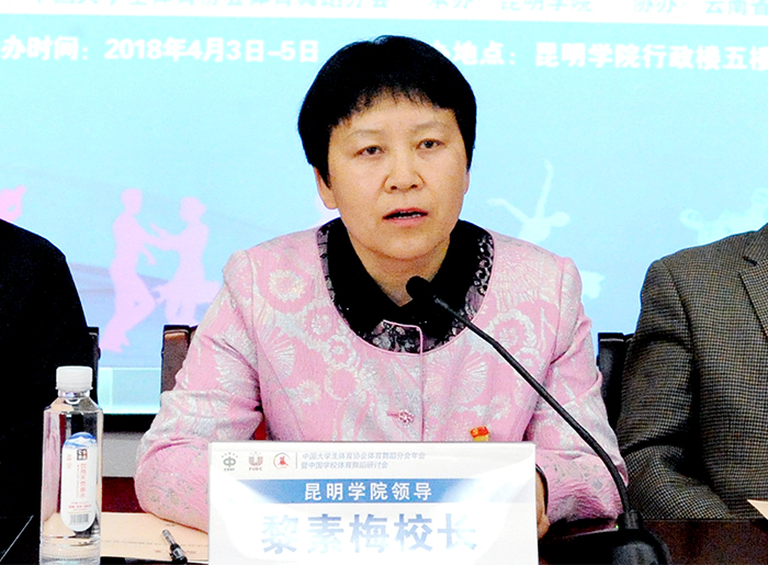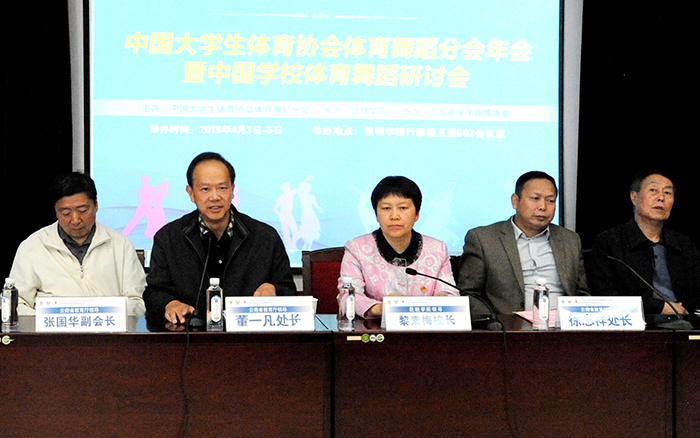 4月4日,中国大学生体育协会体育舞蹈分会年会暨中国学校体育舞蹈研讨会在我校举行。昆明学院校长、中国大学生体育协会体育舞蹈分会主席黎素梅,东华大学副校长、中国大学生体育协会体育舞蹈分会副主席邱高,云南省教育厅体卫艺处处长徐忠祥,云南省教育厅民族教育处处长董一凡,云南省学生体育协会会长姜征明等领导、专家出席会议。来自全国30余所高校的领导、专家参加研讨会。