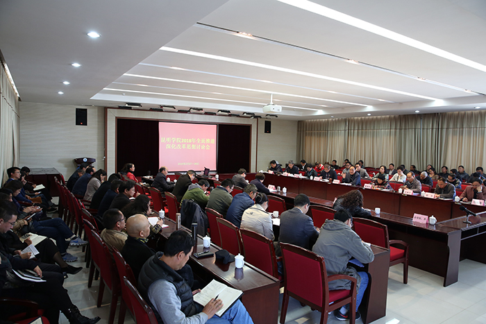 2月27日至28日,学校召开2018年推进全面深化改革思想讨论会,广泛听取意见,统一思想,形成共识。会议强调,要全面领会贯彻落实党的十九大的改革精神和要求,把全校干部师生力量凝聚到学校的改革部署上来,坚持问题导向,以时不我待只争朝夕的担当作为精神和勇气将学校改革扎实稳步引向深入。 学校党委书记陈永明主持会议并讲话,校长黎素梅、党委副书记张祖武、纪委书记王映平,副校长熊晶、郭华、董建华、马银海、沈凡出席会议。各职能部门主要负责人,各院系党政主要负责人和学校深化改革办公室全体人员参加会议。 会议听取并讨论了《昆明学院定编定员定岗方案》、《昆明学院绩效分配方案》、《昆明学院学分制改革思路》、《昆明学院校院(系)两级目标管理指导意见》。与会人员结合党的十九大提出的改革要求,立足学校发展,站位高远,胸怀大局,坚持问题导向,各抒己见。从我国高等教育发展形势和要求到我校实际面临的困难和发展瓶颈等多角度,作了分析、谈了思路,为学校全面深化改革建言献策。 黎素梅校长强调,学校的发展得益于不断的改革,学校的改革势在必行,做好学校综合改革的关键是做好顶层设计,做好顶层设计的关键要找准问题、直面问题,进而分析问题、解决问题。大家要解放思想,充分发表意见,多提问题、提举措、提建议,形成高质量的改革方案。 陈永明书记指出,在春节刚过,新学期收假前,学校党委利用两天的时间召开推进全面深化改革思想讨论会,目的就是集思广益,开动脑筋,统一思想,形成共识,为学校深化改革作好顶层设计打下坚实基础。会议达到了预期目的,体现出“三好”。一是思想认识好,大家达成改革共识,一致认为学校要实现再次跨越发展需要改革,今天的昆明学院改革势在必行,迫在眉睫,决心全面深化改革推进学校快速发展;二是会议氛围好,与会人员心系学校的发展,积极发言,建言献策,提出了好思路、好建议,会议氛围热烈;三是前期准备工作好,自学校深化改革工作启动以来,深化改革办公室积极开展工作,在广泛调研和深入研讨的基础上,形成了初步的改革方案,提出了具体的改革措施,为开好本次讨论会作了充分准备,奠定了基础。 陈永明书记强调,学校综合改革方案的制定是一项系统工程,要在广泛征集意见建议的基础上认真分析、科学研究并解决制约学校改革发展的问题与障碍,不断完善,形成学校改革的“四梁八柱”。制定好的顶层设计,凝聚改革共识,推进治理体系和治理能力的现代化,调动广大干部师生的积极性,激发办学活力和广大师生员工的动力。