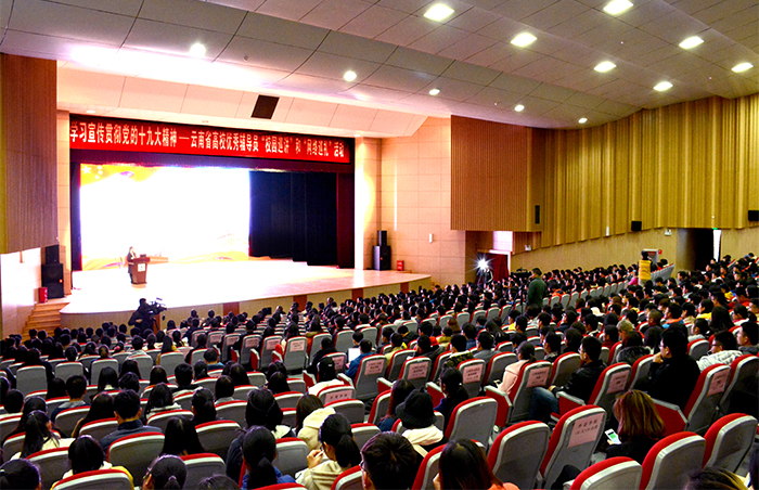 12月19日,由中共云南省委高校工委主办,8所云南省高校辅导员发展研究中心承办,全省各高校协办的“学习宣传贯彻党的十九大精神——云南省高校优秀辅导员校园巡讲和网络巡礼活动”首场校园巡讲报告会在我校学生会堂举行。 省委高校工委副书记陶晴,我校党委副书记张祖武、副校长郭华,云南农业大学、云南财经大学、西南林业大学、云南警官学院、昆明学院等昆明主城区的13所高校的优秀辅导员和学生代表共1300多人参加了首场巡讲报告会。 报告会由副校长郭华主持。 报告会在雄壮的国歌声中拉开序幕。 党委副书记张祖武代表学校在致辞中对巡讲报告团莅临昆明学院与广大师生共同学习党的十九大精神表示热烈欢迎,对巡讲报告团成员与广大师生分享学习心得感悟、所见所闻、所思所悟表示感谢。张副书记指出,党的十九大报告博大精深,需要我们从多方面、多领域、多角度去认识、体会和解读。“青年兴则国家兴,青年强则国家强。”报告中对年轻一代的深情寄语,让无数青年心潮澎湃。报告中还提到要优先发展教育事业、提高就业质量、科学创新等,这些都充分体现了以习近平同志为核心的党中央对教育、对广大青年的关注、关心和关爱。在座的各位都是国家建设发展的生力军,希望大家以此次巡讲报告会为契机,做到带着使命学、带着问题学、带着任务学,真正把党的十九大精神融汇于心、付诸行动。辅导员老师要努力将党的十九大精神融入到教学和科研工作中去,立足本职,当好青年的引路人、筑梦人。青年学生们要在全面学习领悟党的十九大报告的基础上,找准突破口,发挥专业专长,做有理想、有本领、有担当的青年人,不忘初心、牢记使命,将党的十九大精神在实际行动中落地生根。 教育部辅导员“双巡”活动全国报告团成员,第八届全国辅导员年度人物,云南省优秀共产党员,云南省首届最受大学生敬佩辅导员朱丹讲题为《把握新判断,青春有担当》;第八届全国高校辅导员年度人物入围奖、云南省第八届高校辅导员年度人物、云南省辅导员职业能力竞赛一等奖谭勇讲题为《成就新飞跃,坚定跟党走》;云南省2012年和2017年“优秀辅导员”陈绍薇讲题为《不忘新使命,续写新篇章》;昆明铁道职业技术学院电气工程系辅导员张羽寰讲题为《拥抱新时代,铸就中国梦》;云南省第六届高校辅导员“年度人物”,全国第五届高校辅导员职业能力大赛决赛二等奖伏云辉讲题为《踏上新征程 青年有作为》。巡讲团成员紧扣巡讲内容,主题鲜明,语言质朴生动,对党的十九大精神有较深入的学习和体会;通过具体案例和饱含深情的讲述使得宣讲报告贴近大学生实际,富有说服力和感召力。 此次辅导员“双巡”活动是为贯彻落实中央关于推动党的十九大精神进校园、进网络等“七进”的要求而组织开展的,活动旨在积极动员广大辅导员和青年学生学在一起,讲在一起,悟在一起,让身边人讲述身边事,用身边事教育身边人,促进自我学习,深化自我教育,实现自我成长,引导广大青年学生自觉用习近平新时代中国特色社会主义思想武装头脑,不忘成长初心,牢记时代使命,在实现中国梦的生动实践中放飞青春梦想,在为人民利益的不懈奋斗中书写人生华章。 活动由线下、线上两个环节组成。线下巡讲由中共云南省委高校工委遴选出23所高校的30名省级优秀辅导员分成6个巡讲组,由省级高校辅导员发展研究中心领队,将分赴全省各地各高校开展巡讲。云南省高校优秀辅导员“学习宣传贯彻党的十九大精神校园巡讲”从12月19日至12月29日将举办20场巡讲报告会,巡讲将覆盖全省76所高校。同时还将通过网络新媒体平台推送每场报告情况,2018年1月份始将组织全省高校师生积极参与教育部组织的“网络巡礼”活动。线上巡礼将在人民网、光明网等媒体开设“辅导员双巡”活动专题,进行在线学习交流,推动实现学习宣传全覆盖。