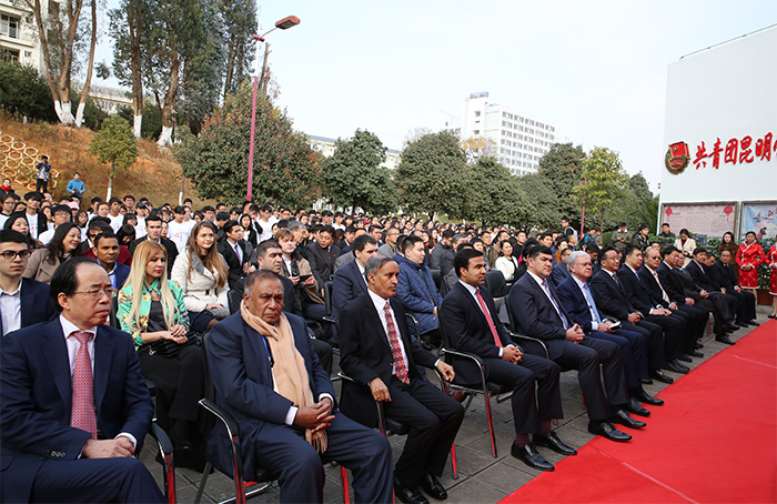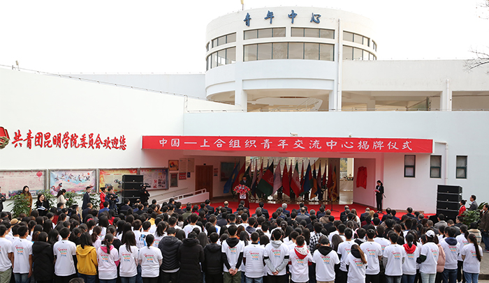 12月30日,中国-上合组织青年交流中心揭牌仪式在我校隆重举行。上合组织秘书长阿利莫夫先生,中国外交部欧亚司司长孙霖江同志,全国青联副秘书长伍伟同志,云南省人民政府副省长高峰同志出席揭牌仪式并共同为中国-上合组织青年交流中心揭牌。 塔吉克斯坦青年和体育委员会副主席、田径协会主席纳扎罗夫先生,阿富汗驻华大使贾楠•莫萨扎伊先生,尼泊尔驻华大使利拉•马尼•鲍德尔先生,斯里兰卡驻华大使卡鲁纳塞纳•科迪图瓦库先生,上合组织副秘书长王开文先生,省人民政府副秘书长赵瑞君同志,云南省人民政府外事办公室主任李极明同志,共青团云南省委书记唐源同志、云南省教育厅副厅长郑毅同志和我校党委书记陈永明同志、校长黎素梅同志等共同参加并见证了揭牌仪式。仪式由昆明市人民政府副市长李志工主持。 仪式上,云南省外办主任李极明同志代表省政府致辞。他指出,青年交流是上合组织人文合作的重要内容,各国青年的交流、合作和创新是人类文明发展的希望。云南处于古代南方丝绸之路要道,拥有面向“三亚”、肩挑“两洋”的独特区位优势,是“一带一路”建设中的重要省份。上合组织各成员国发展与“一带一路”中丝绸之路经济带建设相辅相成,互为机遇。尤其是昆明集中了云南省90%以上的高等院校,现有高等院校45所,在校生62万,集聚了全省高素质的青年资源。通过成功举办和承办了“南亚东南亚大学生体育文化交流周”等各级各类青年国际会议、高端论坛和学术交流研讨会,吸引了更多青年来滇交流,搭建了青年交流与合作平台,为促进上合组织框架内青年交流奠定了良好基础。成立中国-上合组织青年交流中心是云南主动服务和融入国家“一带一路”倡议,推动国际间友好事业健康发展,促进国家和谐和社会进步的大好机会。通过中心的设立,诚挚希望上合组织青年朋友们携手并肩、互学互鉴、共同成长,努力开创中国与中亚、南亚、东南亚地区关系的美好明天,为世界和平与发展作出更大贡献。 上合组织秘书长阿里莫夫先生致辞谈到,青年一代是建设美好世界的中坚力量,上合组织的发展战略和规划都将为他们实现自己的理想和未来发展计划提供力量的源泉。中国-上合组织青年交流中心的成立对昆明、对云南甚至是对整个中国都具有重要意义,它将为不同民族、文化间开展对话、促进相互了解提供很好的平台。 据悉,中国-上合组织青年交流中心从筹备到挂牌,得到了外交部和上合组织秘书处的大力支持,后经团中央批准,鉴于昆明独特的区位优势和突出的枢纽地位,最终落地昆明。这与昆明打造区域性国际中心城市的战略规划不谋而合,也期望中心的设立建设能为提升整个云南国际化水平和辐射周边的能力、促进云南面向南亚东南亚辐射中心建设发挥新的更大的作用。未来,中心将秉承“上海精神”,坚持以国际青年交流事业为主体,致力打造成为集国际青年教育合作、人才培养、文化交流等诸多功能于一体的沟通合作平台,重点围绕加强上合组织框架内的青年人文交流,引领各国青年在上合组织框架内开展更多合作,积极发挥上合组织国际效应和示范作用,促进上合组织国家青年在交流中形成对和平、发展、平等、共享的共识,共同追求和实现人类合作的梦想。 中国-上合组织青年交流中心的成立,也为昆明学院进一步加强开放办学、拓展国际交流合作空间带来前所未有的机遇。学校将依托中心平台,发挥区位优势,不断推进与南亚、东南亚等国家全方位、多领域的交流合作,实现学校国际交流合作工作向深度、广度发展。 揭牌仪式前后,与会领导和嘉宾共同观摩了我校体育舞蹈、瑜伽、果蔬雕刻、果酱画、鸡尾酒、咖啡等教学成果展示,并饶有兴趣地参观了学校滇池流域生态文化博物馆等教学、科研、教育、科普平台和基地。 参加揭牌仪式的还有上海合作组织各国代表,省、市相关部门负责人,我校党政领导张祖武、王映平、熊晶、郭华、董建华、沈凡和来自印度、孟加拉、老挝、秦国、缅甸、马来西亚等国留学生代表和学生青年志愿者代表。