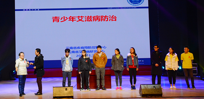 由昆明学院社管学院带来的看照片讲故事《用爱牵起你的手》向观众们展示了三个有关艾滋病的故事。 在歌舞灯光和精湛的文艺演出推进高潮之际,云南省副省长陈舜为我院“云南省禁毒防艾宣传教育基地”揭牌,并与参会嘉宾以及大学生志愿者代表共同按手印墙,为本次世界艾滋病云南省主题宣传活动启动仪式画上了完美的句号。 随后,云南省疾病控制中心专家安晓静为同学们讲授《青少年艾滋病防治专题》的专题讲座。