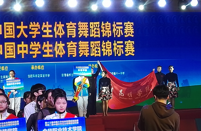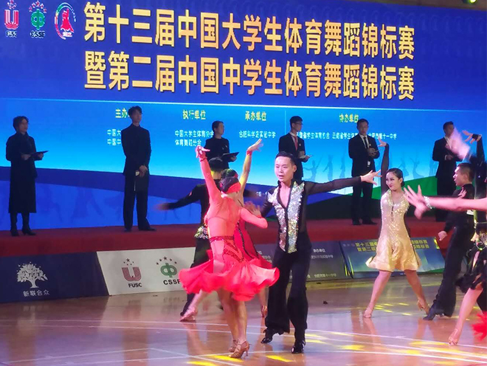 12月9日,中国大(中)学生体育舞蹈领域的最高级别赛事——“第十三届中国大学生体育舞蹈锦标赛暨第二届中国中学生体育舞蹈锦标赛(南区赛)”,在合肥体育中心开赛。参加开幕式的领导和嘉宾有中国大学生体育协会专职副主席华爱军先生,中共安徽省委教育工委副书记王佩刚先生,合肥市人大常委会副主任阚建华先生,中国科学院合肥物质科学研究院副院长吴四发先生,中国大学生体育协会体育舞蹈分会秘书长、昆明学院体育学院院长孙晓坤先生,中国大学生体育协会竞赛部项目官员李臻女士,中国大学生体育协会体育舞蹈分会常务副秘书长田应娟女士,安徽省教育厅体卫艺处丁仁能先生,合肥师范学院校长孙道胜先生,合肥市体育局局长菅青先生,合肥市教育局副局长桑韧刚先生,合肥市瑶海区副区长康震纪先生,合肥市教育局基教处处长谢华国先生,合肥市教育局学生管理中心主任刘原徽女士,合肥科学岛实验中学校长陶坚波先生,合肥第十一中学校长舒东波先生。