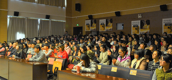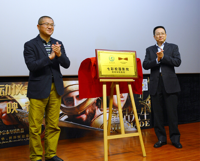 为贯彻落实党的十九大精神,将“校园影院”打造成为校园思想道德教育和公共艺术教育的有效平台,学校联合云南广电传媒集团,在校园内共建“七彩校园影院”。12月8日,“七彩校园影院”——昆明学院影院成功举行首映仪式,云南本土题材影片《童话先生》正式上映,这标志着昆明学院校园影院正式投入使用。昆明学院党委副书记张祖武,云南广电传媒集团副总经理杨于明,云南金彩视界影业股份有限公司副总经理钱虹宇,以及昆明学院各院系热爱电影的同学们参加了此次活动。 张祖武副书记在首映仪式上致辞,强调建设校园影院的意义。他说:“校园影院的建成,是落实党的十九大精神的具体举措,校园文化是社会主义文化的重要组成部分,昆明学院影院的落成,将为我校传播先进的社会主义文化提供重要的阵地,我希望通过全校师生共同努力,把七彩校园影院打造成为大学生思想教育的平台,打造成为我们弘扬社会主义核心价值观的平台。” 杨于明副总经理对我校的七彩校园影院的发展有很大的期待,他表示,积极推进七彩校园影院建设,有利于充分发挥电影艺术在培育和践行社会主义核心价值观方面的积极作用。他希望把更多更好的优秀电影作品引入大学校园,让更多的大学生们走近电影、了解电影、爱上电影,甚至创作电影。通过主流影像的思想表达、巩固主流舆论阵地,丰富高校文化生活。 电影的导演李宗泰和演员甫枭虎也来到了活动现场,他们代表主创团队,分享了电影拍摄过程中的逸闻趣事,他们说:“云南本土的电影是小众的,但是文化的层次却是比较高的,《童话先生》这部影片旨在传达习近平总书记提出的不忘初心,继续前进的精神,鼓励当代大学生不忘初心,努力学习,奋发向上。” 校园影院的启动仪式在电影制作人的致辞后正式开始。首先,昆明学院党委副书记张祖武和云南广电传媒集团副总经理杨于明进行授牌,之后由昆明学院党委副书记张祖武、云南广电传媒集团副总经理杨于明、云南金彩视界影业股份有限公司副总经理钱虹宇和《童话先生》的导演李宗泰共同为大家拍下场记板。拍下场记板,大屏幕亮起,电影《童话先生》正式开播。 云南本土电影《童话先生》,是一部讲述英国作家来云南支教的电影。电影情节简单易懂,演员们的对话生动有趣。电影在东西方文化的冲突中产生了大量令人啼笑皆非却又深深思考的情节,较为真实的还原了云南大山深处孩子们的生活。