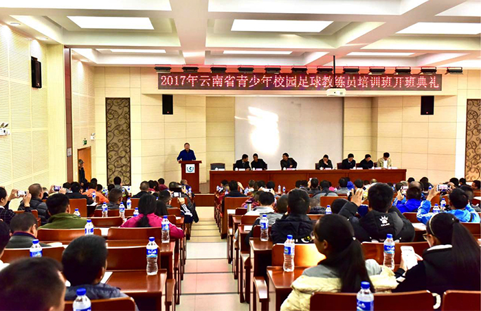 马银海副校长在致辞中表示,在云南省教育厅、云南省学生体育协会的指导下,在教育部全国校园足球核心调研组的关心支持帮助下,我校迎来了“2017年云南省校园足球教练员培训”工作。为此,我校高度重视、充分准备,积极协调省内外专家,提早落实各项工作,确保培训高标准、高质量、高效益。为进一步发挥我校云南省校园足球文化教育培训基地的人才培训优势,提升培训能力,我校从培训模式、课程设置、教材开发、师资建设和能力评价等方面,构建了更为完备、系统的云南省校园足球人才培训体系,为云南省校园足球的健康、快速、有序发展尽职尽责、尽心尽力。