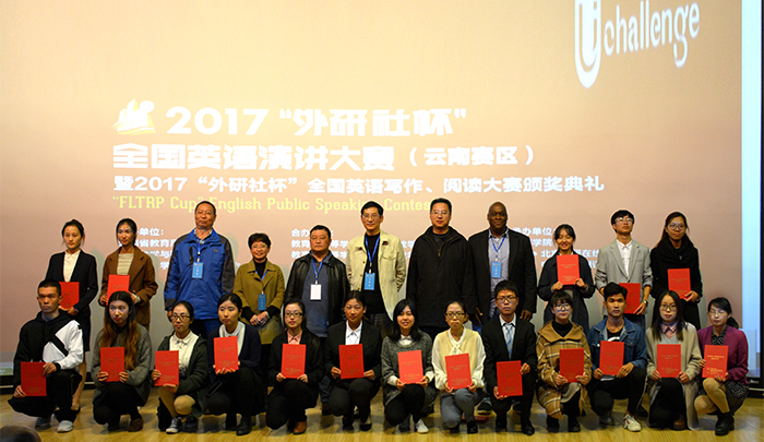 11月3日,2017“外研社杯”全国英语演讲大赛(云南赛区)暨2017“外研社杯”全国英语写作大赛、阅读大赛颁奖典礼在我校成功举办。大赛由云南省教育厅、外语教学与研究出版社和云南省大学外语教学研究会主办,教育部高等学校大学外语教学指导委员会、教育部高等学校英语专业教学指导分委员会、中国外语与教育研究中心合办,昆明学院、Unipus北京外研在线教育科技有限公司、CLA中国外语测评中心承办。