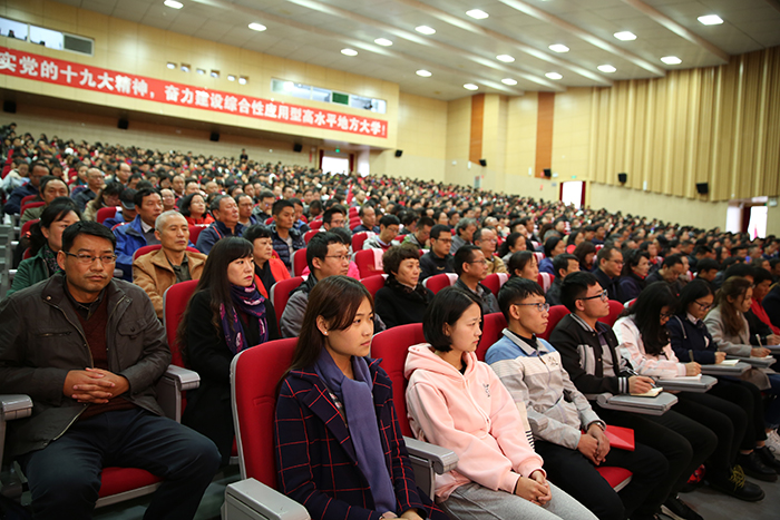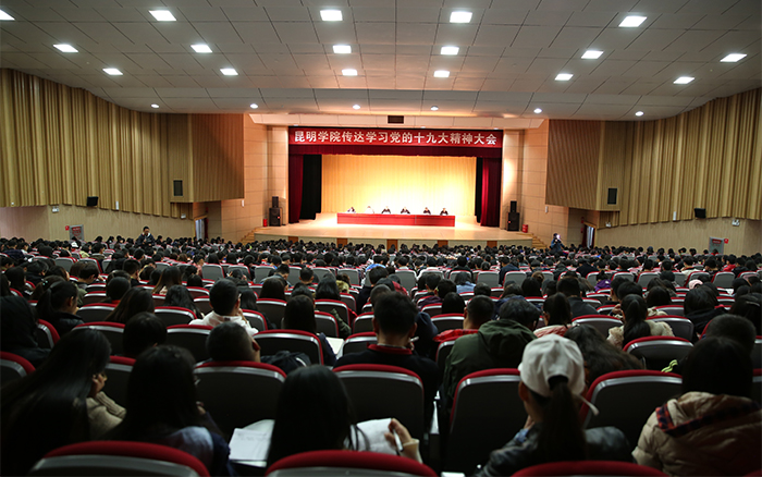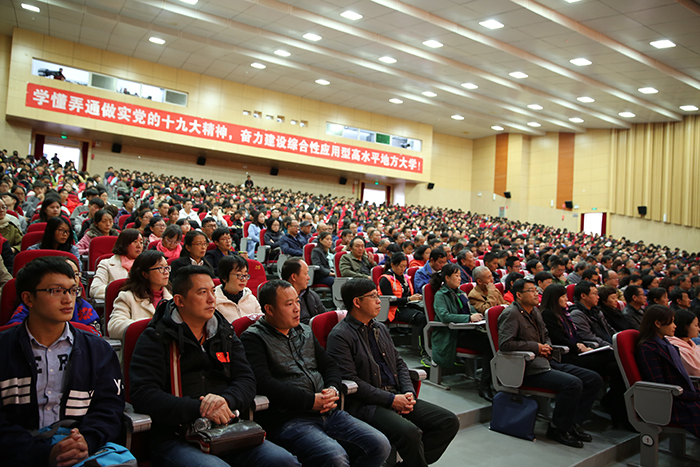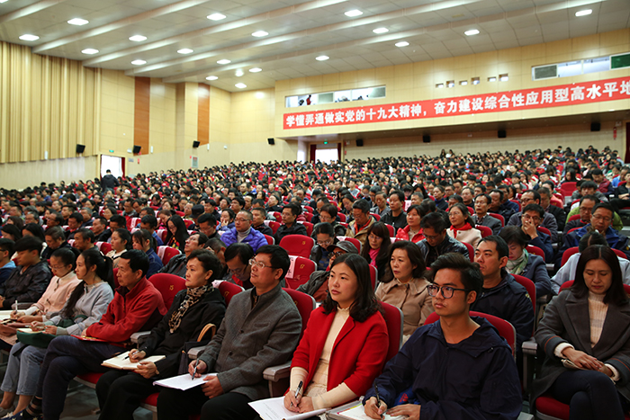 11月3日,昆明学院召开扩大会议,传达学习党的十九大精神,对全校学习宣传贯彻进一步作出安排。强调全校上下要把党的十九大精神学习好、宣传好、贯彻好,用精神武装头脑、指导实践、推动工作,把广大党员干部、师生员工的思想和行动统一到党的十九大精神上来,以习近平新时代中国特色社会主义思想为指引,奋力建设综合性应用型高水平地方大学。 学校党委书记陈永明主持会议并传达党的十九大精神,就深入学习宣传贯彻党的十九大精神提出明确要求。纪委书记王映平,副校长熊晶、董建华、沈凡,副校级领导孙勇出席会议。 陈永明书记从党的十九大的基本情况、报告的主要精神、中央纪委工作报告的主要内容、党章修改的主要内容、十九届一中全会精神的主要内容五个方面,系统归纳了过去5年取得的历史性成就和发生的历史性变革,深刻阐述了习近平新时代中国特色社会主义思想的时代背景、核心要义、创新观点和重大贡献,阐述了中国特色社会主义进入新时代、我国社会主要矛盾变化等重大论断,对“两步走”“两个阶段”的战略安排,对经济社会发展的重大部署,对坚定不移全面从严治党进行了系统阐释解读。报告主题鲜明,重点突出,数据详实,资料丰富,运用生动鲜活的数据、案例,系统透彻、深入浅出,具有很强的针对性和感染力。 陈永明书记指出,党的十九大是在全面建成小康社会决胜阶段、中国特色社会主义进入新时代的关键时期召开的一次十分重要的大会,是在新的历史起点上开启党和国家事业新征程的一次大会,是一次不忘初心、牢记使命、高举旗帜、团结奋进的大会,在党和国家发展史上具有重大里程碑意义,是迈向中华民族伟大复兴的重要一步。认真学习宣传贯彻党的十九大精神,关系党和国家事业继往开来,关系中国特色社会主义前途命运,关系最广大人民根本利益,也事关学校综合改革发展进程,动员广大党员干部、师生员工的思想和行动统一到党的十九大精神上来,用精神武装头脑、指导实践、推动工作,奋力建设综合性应用型高水平地方大学,培养社会主义合格建设者和可靠接班人具有重大现实意义。 陈永明书记强调,学习宣传贯彻好党的十九大精神,是学校当前和今后一段时期的首要政治任务。学懂、弄通、做实党的十九大精神,最重要的是学习贯彻习近平新时代中国特色社会主义思想,这是党的十九大精神的灵魂,是我们把握党的十九大精神的“纲”,是我们做好一切工作的主线。要抓住这条主线,在全校迅速兴起学习宣传贯彻党的十九大精神的热潮,使党的十九大精神走进支部、深入班级、融入社团,做到人人知晓,把干部、师生力量凝聚到实现党的十九大提出的各项目标任务上来,让习近平新时代中国特色社会主义思想在学校形成生动实践。 陈永明书记对学习宣传贯彻党的十九大精神作出具体安排,强调:一要抓好学习,准确领会精神实质。全校各党总支、直属党支部,全体党员要原原本本学习党的十九大报告和新党章,准确把握报告体现的本质内涵和精神实质,切实在学懂弄通做实上下功夫,切实将思想和行动统一到党的十九大精神上来,用党的创新理论武装头脑、指导实践、推动工作。二要抓住目标定位,落实好报告对教育工作提出的新要求。广大教师要以立德树人为主线,以培养社会主义建设者和接班人为目标,深入学习、全面贯彻党的十九大精神,努力把握教育历史定位,明确教育根本任务,理解教育本质要求,突出教育中国特色,将党的十九大报告中有关教育的精神实质内化于心,外化于行,为把昆明学院建设成为全国知名、特色鲜明的综合性应用型高水平地方大学不断努力。三要抓好贯彻落实,做到“三个结合”。全校各单位要结合党的十九大对教育工作的重大部署,联系我校“转型发展、内涵提升、重点突破”的思路,把党的十九大精神切实在工作中贯彻下去、体现出来,努力做到“三个结合”。一是要把贯彻落实党的十九大精神与贯彻落实全国、全省高校思想政治工作会议精神结合起来,进一步筑牢高校师生理想信念。二是要把党的十九大精神贯彻融入高校“两学一做”学习教育和一流党建创建中,着力提升高校党委的领导核心作用、各党总支、直属党支部及党支部的战斗堡垒作用和党员的先锋模范作用。三是要用党的十九大精神指导我校全面深化改革工作,以问题、目标、效果为导向,以改革为手段,聚焦转型和内涵,不断推动学校又好又快发展。 会上,熊晶副校长宣读了《中共昆明学院委员会关于成立“学习贯彻党的十九大精神”昆明学院宣讲团的决定》,对宣讲工作提出要求:一要提高政治站位,认真备课,精准宣讲;二要牢牢把握“学懂弄通做实“的宣讲要求,突出难点重点;三要走进支部深入班级,实现校园宣讲全覆盖。 陈永明书记等与会校领导为24名“学习贯彻党的十九大精神”昆明学院宣讲团成员和21名“学习贯彻党的十九大精神”学生宣讲团成员颁发聘书。这标志着“学习贯彻党的十九大精神”昆明学院宣讲团正式成立并全面开讲。宣讲团成员将根据不同的对象、不同的需求,走进支部、深入班级、融入社团,同党员干部、师生员工开展面对面、互动式的宣讲,扎实推动党的十九大精神走进基层、走进师生,在全校形成浓厚学习氛围。 全体中层干部(含非领导职务),机关全体科级干部,