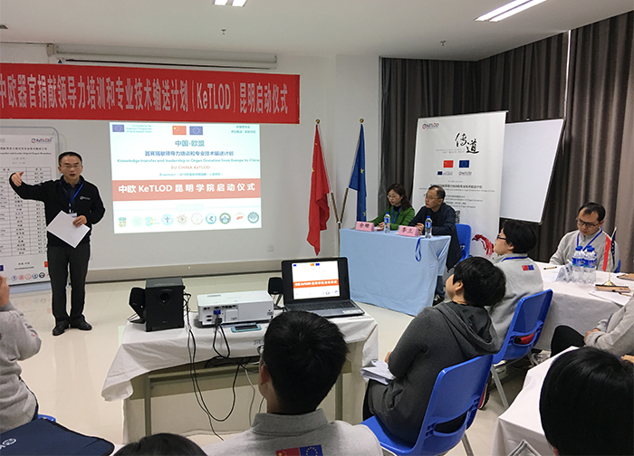 11月4日,中欧器官捐献领导力培训和专业技术输送计划(KeTLOD)在昆明学院第一附属医院启动。我校副校长李立,医学院院长余珊,项目负责人何江波博士,协同我校直属附属医院ICU专家及20位学员共同出席本次启动仪式.启动仪式还邀请了昆明医科大学人文学院张瑞宏院长出席。