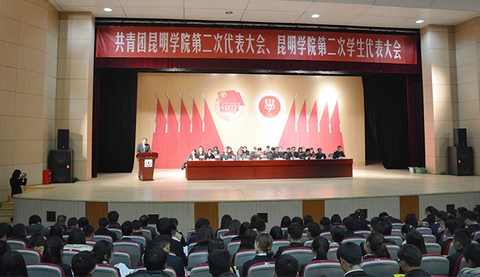 11月24日,共青团昆明学院第二次代表大会暨昆明学院第二次学生代表大会在我校学生会堂隆重召开。团省委副书记赵国良,团市委书记郝国栋;校党委书记陈永明,党委副书记张祖武,副校长郭华、董建华、沈凡,副校级领导孙勇;省学联驻会主席阮玉珏出席了本次开幕式。兄弟院校团委书记、学生会主席,学校各职能部门负责人、各院系党总支书记,团员代表、学生代表共计500余人参加了开幕式。昆明理工大学、红河学院等高校团委向大会发来贺信贺电。