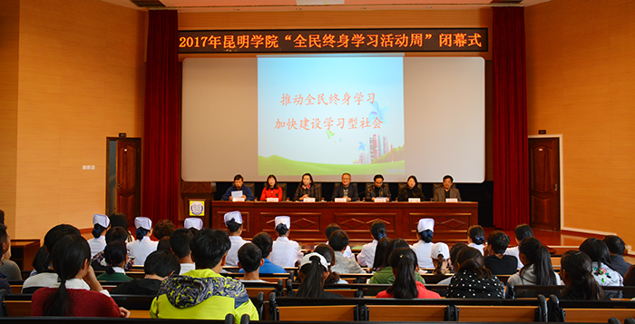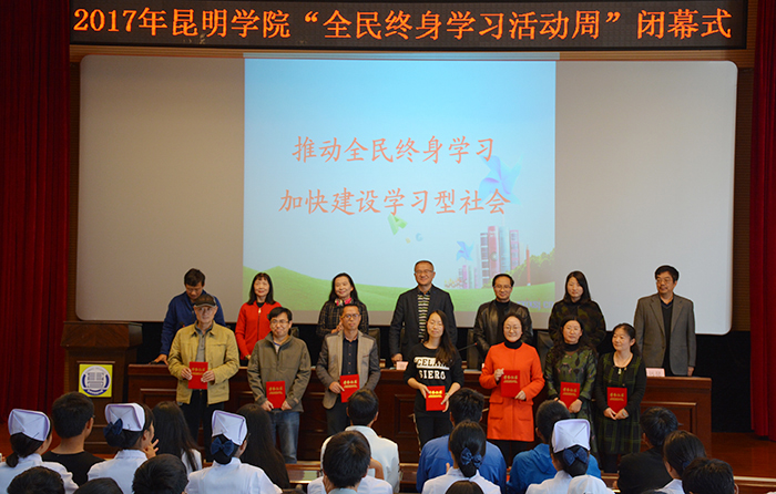 10月19日,昆明学院“全民终身学习活动周”闭幕式在图书馆报告厅举行。学校党委副书记张祖武、校工会常务副主席杨岚、校团委负责人、图书馆党总支书记何琍芳、图书馆馆长李海雁及相关负责人出席闭幕式,各院系师生代表和获奖师生近200人参加闭幕式。闭幕式由校工会专职副主席王荣林主持。 闭幕式上杨岚副主席作了活动周总结讲话,李海雁馆长宣读了《关于对2017年昆明学院全民终身学习活动周中“学习之星”“诵读之星”获得者进行表彰的决定》,与会领导为获得“学习之星”和“诵读之星”称号的师生代表进行了颁奖。 本次活动周按照教育部、云南省教育厅以及昆明学院关于开展“全民终身学习活动周”通知的要求,由学校工会和图书馆组织具体实施。校党委副书记张祖武出席了开幕式,宣布“2017年昆明学院全民终身学习活动周开幕”。