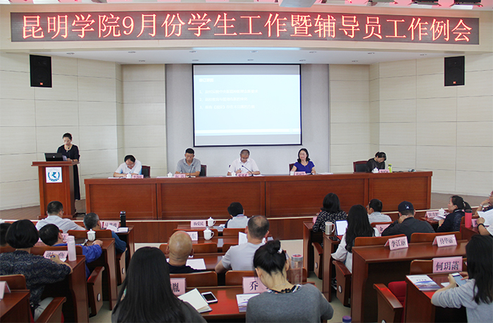 学生工作例会上,教务处对《昆明学院学生学习管理制度》的修定作了说明;学生处对《昆明学院学生手册》(2017版)的修定作了说明,对近期新生入学教育、禁毒防艾、学生宿舍查寝制度、优良学风班年终考核、学生奖助等工作作了安排布置;保卫处通报了暑假期间及开学以来的校园安全情况;招就处及校团委分别对近期学生就业工作及团学工作作了安排和通报。