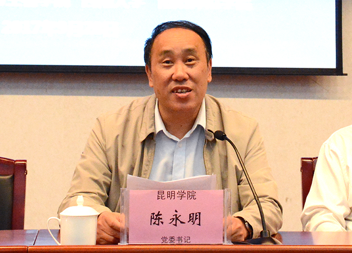 我校党委书记陈永明在会上致辞。他首先代表学校感谢都市农业高校联盟对昆明学院举办第三十三次协作会的支持和信任,同时对参会的各成员单位领导、专家、学者表示欢迎。他说,昆明学院作为一所年轻的地方高校,在省市各级领导的高度重视和支持下,坚持以服务地方经济社会为己任,立足昆明、面向云南,紧密对接区域经济产业行业优化设置专业,在推进校企产教融合、培养急需应用型人才方面形成了自己的特色和优势,为促进学科专业交叉融合,打造和培育特色、新兴学科专业奠定了基础。“十三五”期间,学校确立了建设“全国知名、特色鲜明的综合性应用型高水平地方大学”的奋斗目标,在高原特色现代农业、生物医药和大健康、新材料、旅游文化、信息、现代物流、先进装备、食品与消费品制造等八大产业领域重点扶持建设新兴交叉学科,提升学科建设水平,不断增强学校的核心竞争力。目前学校正在按照“转型发展、内涵提升、重点突破”的思路,紧紧围绕申报学校硕士授权单位和硕士点,国家级的高水平科研项目和更名大学目标的实现而不懈努力。