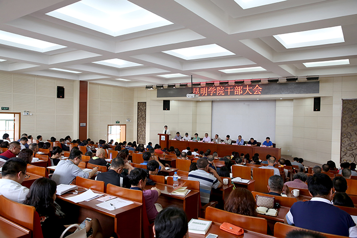 8月29日,学校召开干部大会,对标学校2017年度工作任务,总结上半年工作、安排部署下半年工作。党委书记陈永明出席会议并讲话,校长黎素梅安排部署重点工作,党委副书记张祖武主持会议。纪委书记王映平,副校长熊晶、郭华、董建华、马银海、沈凡出席大会。 陈永明书记指出,今天的大会是一个交流思想、安排工作、鼓劲加油的大会。会上,到清华大学和浙江大学培训的三位同志和到兰州大学、南京大学挂职的中层干部代表结合自己培训和挂职学习的情况和大家分享了收获和感想。黎素梅校长对2017年上半年工作进行总结,并对2017年下半年的重点工作进行安排部署,提出了工作措施,明确了工作目标任务。全校上下一定要把思想和行动统一到学校党委和行政的安排部署上来,巩固发展良好势头,再接再厉,乘势而上,紧紧围绕建设“全国知名、特色鲜明的综合性应用型高水平地方大学”的学校发展总体目标,结合各院系和部门实际,坚持解放思想、求真务实、凝心聚力,攻坚克难,高质量完成今年的各项目标任务。 陈永明书记要求,一要把握大势,履职尽责,不断推进全面从严治党。全校上下一定要把握全面从严治党的大势,履行好管党治党的政治责任,要不断增强“四个意识”特别是核心意识和看齐意识,层层传导压力,压实责任,切实做到蹄疾步稳,不断推进学校各项改革发展工作,实现学校发展再跨越。二要结合实际、落细落小,贯彻落实好全国高校思想政治工作会议精神。全校各单位,要深入学习贯彻好全国高校思想政治工作会议精神,进一步正确把握办学方向,因事而化、因时而进、因势而新做好学生思想政治工作。三要用心、用力、用情抓好各项工作的落实。以高度的政治站位,强烈的责任感、使命感和有为的担当精神做好硕士学位授权单位和硕士点的申报、首届全国文明校园、准备全面启动明年本科教学的审核性评估工作。我们要把文明校园创建与文明城市创建有机结合,积极主动参与到昆明市创建全国文明城市工作中,坚决落实好昆明市的创建要求,不拖昆明市的后腿,要在昆明市创建全国文明城市中当排头兵、起引领和示范作用,为昆明市创建全国文明城市加分点赞。 陈永明书记强调,“一分部署,九分落实”,思路已经明确,蓝图已经绘就,我们接下来就是要坚定不移地按照“转型发展、内涵提升、重点突破”的思路,以学校更名昆明大学为目标,以申报硕士学位授予单位为突破点,综合施策,精准发力,撸起袖子加油干,以优异成绩迎接党的十九大胜利召开! 黎素梅校长在安排部署工作时,紧扣“全面发展 重点突破 努力做好2017下半年各项工作”主题,对学校2017年上半年工作进行总结,对2017年下半年重点工作进行安排部署,提出工作措施,明确工作目标任务和要求。 黎素梅校长指出,2017上半年,学校以全国高校思想政治工作会议和全国教育工作会议的精神为指导,牢固树立“四个意识”,坚决贯彻执行党中央国务院、省委省政府、市委市政府的决策部署,围绕学校建设“全国知名、特色鲜明的综合性应用型高水平地方大学”的发展目标,党建工作与中心工作有机统一、相互促进、共同提高,学校各项事业取得了新进展。一是着力推进全面从严治党,科学建党水平不断提高;二是学校“十三五”事业发展规划正式发布实施;三是转型发展工作实现重要突破;四是更名工作取得实质性进展;五是申硕工作稳步开展;六是教学工作、科研工作、学生管理工作、招生就业工作、人事工作、财务工作、内控工作、国际交流工作、脱贫攻坚工作、继续教育工作等工作顺利推进、稳步实施。 黎素梅校长强调,全校上下要进一步统一思想、提高政治站位,咬住年度工作任务,抢抓时间,扎实推进下半年各项工作。一要继续做好全国文明校园创建和硕士学位授予单位申报工作;二要以审核评估为契机,不断提高教学质量。全面启动审核评估迎评工作、完成转型发展示范高校建设方案的制定、开展课程标准的制定与评价工作、探索开展本科专业认证的试点工作、加快教学成果项目的遴选培育工作、做好到南京大学跟班学习学生的选派工作;三要以提高科研管理水平为手段,促进科研工作快速发展;四要以思想政治教育为引领,做好学生管理服务工作;五要以迎接党的十九大召开为前提,全面做好学校安全维稳工作;六要以学校中心工作为核心,做好人事、计财、基建等其他相关工作。 张祖武副书记主持会议要求,一要统一思想,凝聚共识,不断提高站位,增强“四个意识”,切实把思想和行动统一到学校党委和行政的安排部署上来,扎实做好各项工作,确保完成年度工作任务。二要及时认真传达学习贯彻会议精神。各单位要迅速召开不同层次工作会议,认真传达学习、深刻领会、全面把握陈书记、黎校长的讲话精神;要对照任务和要求找差距,以问题为导向,补齐短板,做到思想、行动对标,以钉钉子精神狠抓落实,久久为功,落细落小,紧紧扭住重点工作这个“牛鼻子”,以点带面,持续用力,力争在本学期末全面完成预定的各项任务。三要立足当前,扎实做好开学各项工作。要把学习贯彻本次会议精神与科学谋划本单位、本部门下学期工作紧密结合起来,与正在开展的“两学一做”学习教育常态化制度化各项工作结合起来,把会议精神融会贯通到工作实践中,转化为推动发展的具体行动,