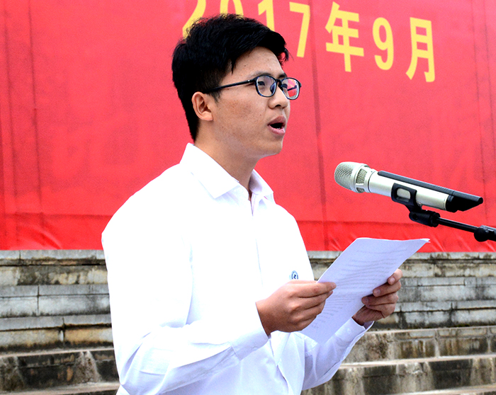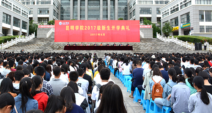 9月3日,我校2017级新生开学典礼在聂耳广场举行。全体校领导,院系党政负责人、辅导员、新生班主任和全体新生参加了开学典礼。开学典礼由党委书记陈永明主持。 开学典礼在庄严隆重的升国旗仪式中拉开序幕。 校长黎素梅在会上代表学校全体师生欢迎新同学加入昆明学院这个温暖和谐的大家庭。她说,同学们,经历了高中映雪囊萤的苦读,你们用优秀的成绩向家人、向老师、向高考交出了令人满意的答卷,今天,同学们实现了大学之梦,将在昆明学院开启全新的学习和生活,希望同学们铭记校训“明德至善,知行利物”,利用好大学时光,塑造自己、锤炼自己,为将来迎接更加艰巨的挑战做好身体、心理和学业上的准备。但愿同学们不负韶华,铸就自我,和学校一起并肩前行,努力实现属于我们自己的中国梦。黎素梅校长指出,目前,学校正在开展昆明市创建全国文明城市和学校创建全国文明校园的双创工作,希望同学们在今后的学习中与社会主义核心价值观24字结合起来,将自己的一言一行融入到学校的双创工作中,从身边的一点一滴做起,用自己的文明行动,为学校双创工作增光添彩。黎素梅校长对同学们提出了五点殷切希望:一、要明确目标,做好规划。二、要乐于学习,打牢基础;三、要勤于思考,提升自我;四、要遵纪守法,加强修养;五、要和谐共处,收获快乐。 马克思主义学院缪文武副教授代表教师在会上发言。他结合自己多年来的教学经验和感悟,与同学们分享了青春是励志笃行的主题;青春是一个自强奋斗的主题;青春是一个神奇美好的主题。 新生代表2017级音乐学院赵瑜欣同学在发言中表达了成为一名大学生的激动心情和对老师的感恩及对未来的美好憧憬。 2015级人文学院历史学专业邓博文同学代表老生向来自五湖四海的新同学成为昆明学院中的一名学子表示祝贺和欢迎,希望学弟学妹们铭记“明德至善、知行利物”校训,努力做一个勤奋学习,积极向上、独立思考,勇于面对挑战的追梦人。