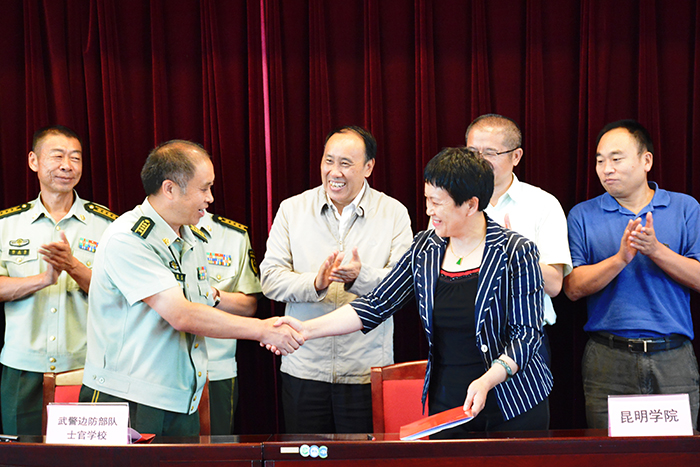 会上,校长黎素梅代表学校与武警边防部队士官学校政委金尚文大校签署两校警民共建合作协议。