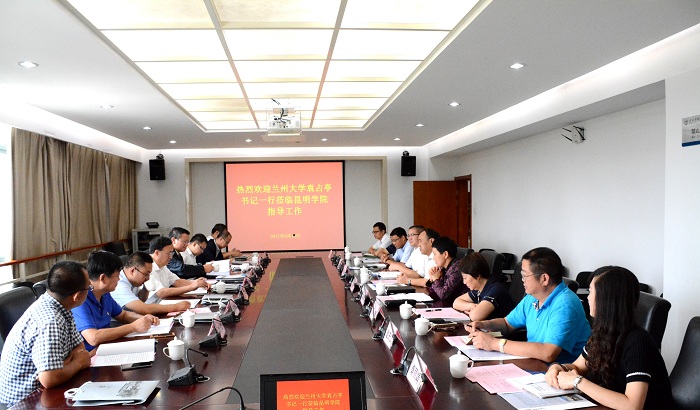 8月19日,兰州大学党委书记袁占亭一行到我校考察,云南省人民政府教育督导团总督学陈世波,我校党委书记陈永明、校长黎素梅、党委副书记张祖武及相关部门负责人参与座谈交流。