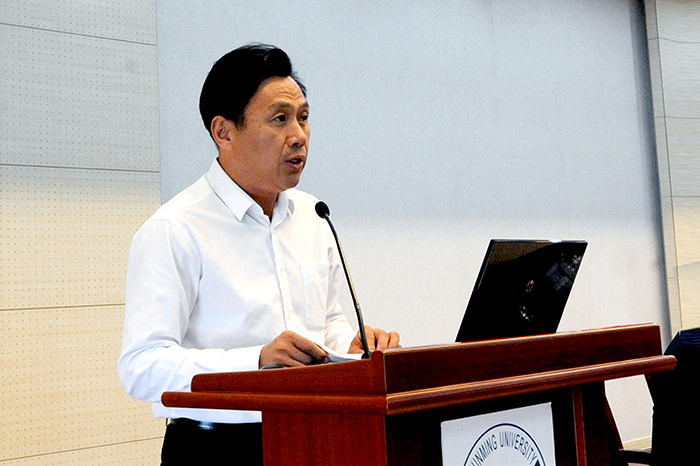 6月21日,由中国工程院农业学部主办,沈阳农业大学、昆明学院、云南省农业科学农业环境资源研究所、云南威武鑫农业科技股份有限公司承办,云南农业大学、云南省农业技术推广总站协办的秸秆生物炭技术产业化途径暨生物炭产业化与作物健康栽培前沿技术科技论坛在我校举行。中国工程院二局副局长左家和,中国工程院农业学部办公室主任王庆,沈阳农业大学、中国工程院院士陈温福,华南农业大学、中国工程院院士罗锡文,贵州大学、中国工程院院士宋宝安,云南农业大学、中国工程院院士朱有勇,昆明学院校长黎素梅,云南省科技厅副厅长娄垂新,云南省环保厅副厅长贺彬,云南威武鑫集团董事长段政廷,省内外参会高校相关部门领导、烟草单位领导,我省多家科研院所的领导、科技人员,昆明学院农学院党政负责人以及我省参会高校的师生代表参加了论坛开幕式。 我校黎素梅校长代表昆明学院在会上致辞。黎校长代表昆明学院对此次论坛在昆明学院开幕表示祝贺,向参加本次论坛的全体嘉宾表示热烈的欢迎,向主办方——中国工程院对昆明学院的信任和支持表示衷心的感谢。特别向罗锡文院士、宋宝安院士、朱有勇院士、陈温福院士在百忙之中莅临本次论坛指导表示衷心的感谢。 黎校长指出,在陈温福院士的帮助和指导下,2016年昆明学院和云南威鑫投资控股集团共同建设的昆明生物炭与作物健康栽培领域院士(陈温福)工作站正式在我校揭牌。该工作站的成立对进一步提升产学研合作共赢,有效整合学术资源,加快创新创业教育改革,促进学校学科建设、人才培养、科学研究,推进昆明农业现代化、农业产业化发展具有重要的意义。此次论坛在昆明学院举行,有幸邀请到4位全国知名的农业专家、工程院院士到会作学术报告,为参会嘉宾和师生提供了一次向院士学习的机会,相信在各位院士的帮助下,昆明学院在相关领域的学术研究,以及陈温福院士工作站的建设方面将取得更大的进步和新的成绩。