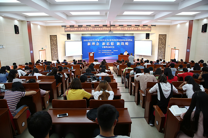 6月2日,由昆明市委宣传部、昆明学院联合主办,我校马克思主义学院承办的昆明市深化学习贯彻习近平总书记系列重要讲话精神和治国理政新理念新思想新战略专题理论研讨会在我校成功举办。来自省、市和高校的专家学者紧紧围绕“治国理政新理念新思想新战略与昆明实践”主题,在理论与实际相结合的基础上,聚焦云南和昆明跨越式发展、精准扶贫、大健康产业发展、生态文明教育、滇中城市经济区建设中的金融支撑体系构建等领域,分析现状、探讨对策,提出了具有真知灼见和可操作性的建议,助推昆明创建全国文明城市。