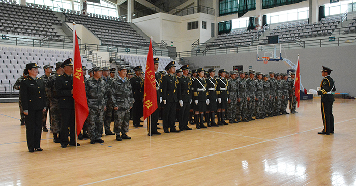 在庄严的国旗面前,全体民兵连成员在社会管理学院团总支书记余一夫的带领下面向国旗庄严宣誓,铿锵有力的声音响遍了整个会场,彰显了我校民兵连成员效忠党、国家和人民的坚定信心和勇气。